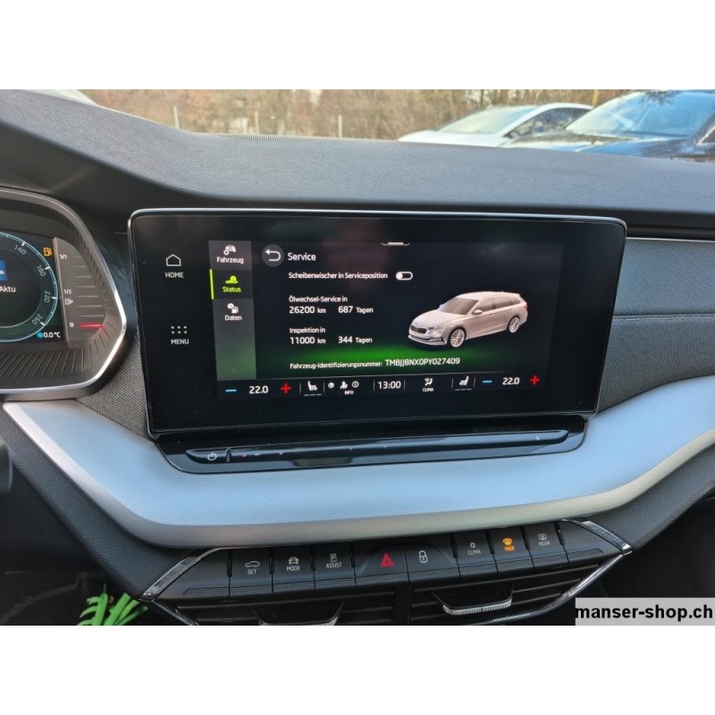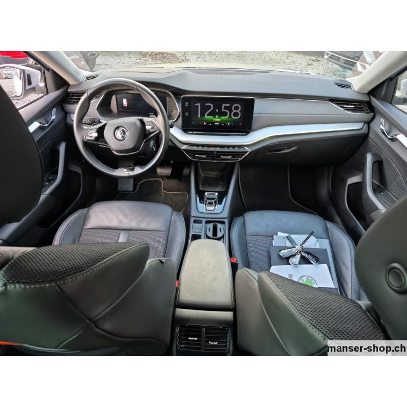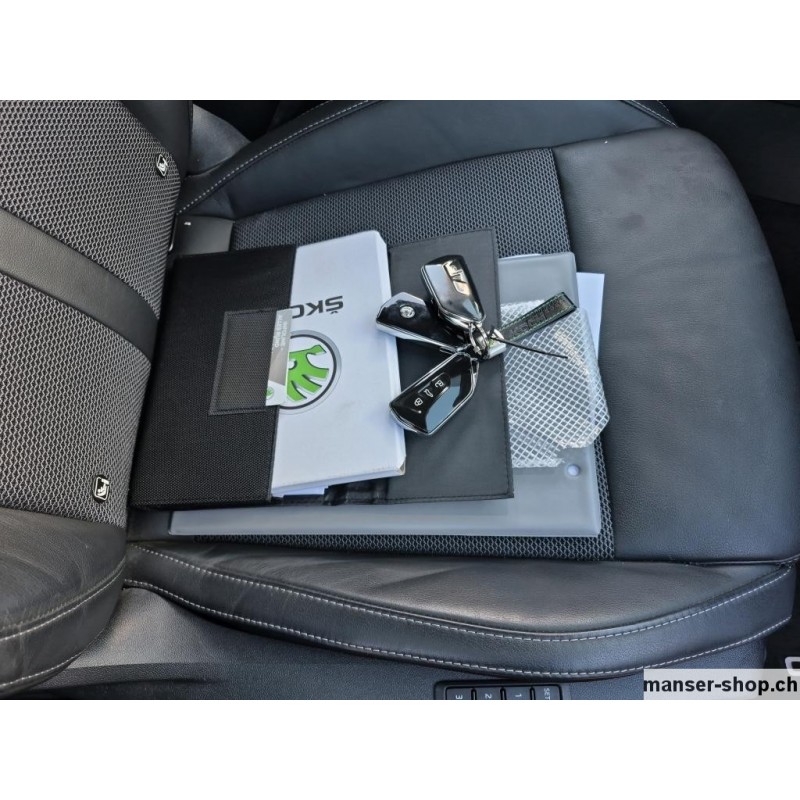 Keyless Schliess- und Startsystem, Start + Stopp Automatik, Elektrische Fensterheber vorne + hinten, Aussenspiegel el.verstell-heiz-anklappbar/abblendbar, Tempomat mit Geschwindigkeitsbegrenzer, Heizbare Scheibenwaschdüsen, Lichtassistentsystem/ Innenspiegel aut. abbl./ Regensensor, Dachreling schwarz, Leichtmetallfelgen 17" Rotare, Dieselpartikelfilter, Airbag Fahrer und Beifahrerseite, Deaktivierung Beifahrerairbag, Knieairbag Fahrer, Kopf und Seitenairbag vorne, Spurhalteassistent LKA, Müdigkeitserkennung, Front Assist (Umfeldüberwachungssystem), Park-Distanz-Sensor vorne + hinten, Reifendruck-Kontrollsystem RDK, LED Tagfahrlicht und LED Heckleuchten, LED-Scheinwerfer, LED-Nebelscheinwerfer, ABS Antiblockiersystem, EBV Elektronische Bremskraftverteilung, HSA Berganfahrassistent, Zwei Zonen-Klimaanlage Climatronic, Dekoreinlagen, Multifunktionslenkrad Leder, Sitzheizung vorne, Rücksitzlehne geteilt umklappbar, Vordersitze höhenverstellbar mit Lendenwirbelstützen, Mittelarmlehne vorne, Textil-Fussmatten vorn und hinten, Digital Display Cockpit, DAB+ Digital Audio Broadcast, Bluetooth Freisprecheinrichtung, Navigationssystem Columbus, SmartLink Premium, Infotainment Online, Keine Gewähr auf die Angaben der Serienausstattungen Panorama-Schiebedach, Heizbare Frontscheibe, Anhängerkupplung mechanisch ausklappbar, Metallic-/ Perleffekt-Lackierung, Notrad in Stahl platzsparend, Sitzbezüge in Stoff/ Leder, Netztrennwand, Simply Clever