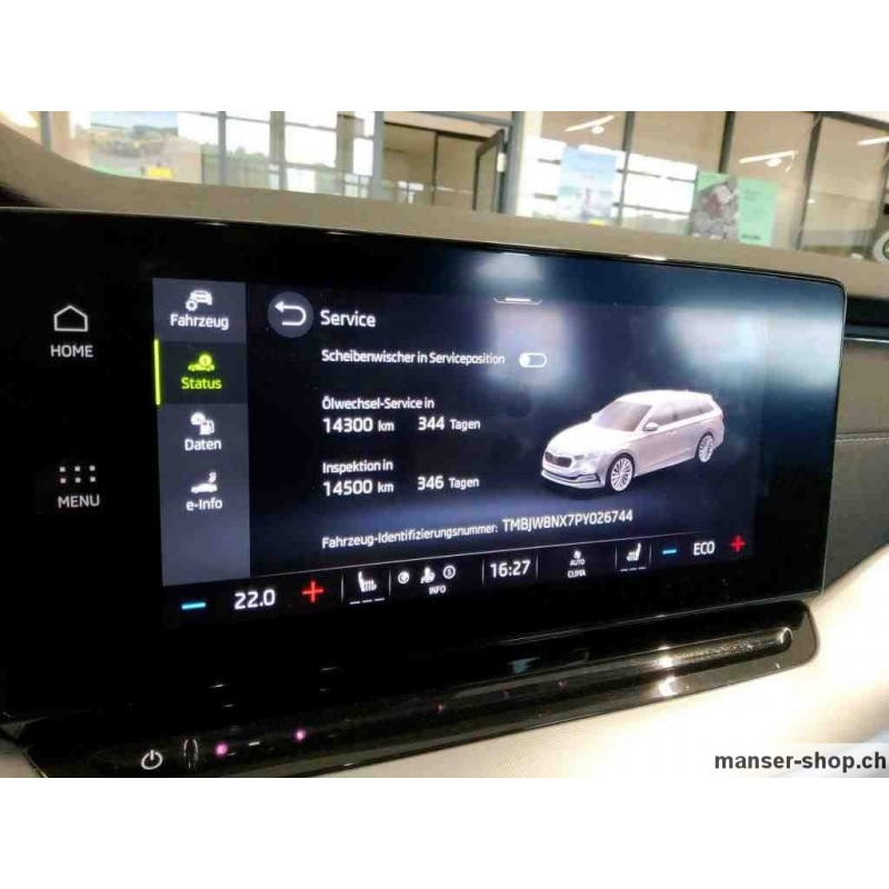 Pack mySkoda, Keyless Schliess- und Startsystem, Start + Stopp Automatik, Elektrische Fensterheber vorne + hinten, Aussenspiegel el.verstell-heiz-anklappbar/abblendbar, Tempomat mit Geschwindigkeitsbegrenzer, Heizbare Scheibenwaschdüsen, Lichtassistentsystem/ Innenspiegel aut. abbl./ Regensensor, Dachreling schwarz, Vorbereitung für Anhängerkupplung, Leichtmetallfelgen 18" Perseus, Fahrprofilauswahl, Airbag Fahrer und Beifahrerseite, Deaktivierung Beifahrerairbag, Knieairbag Fahrer, Kopf und Seitenairbag vorne, Spurhalteassistent LKA, Front Assist (Umfeldüberwachungssystem), Park-Distanz-Sensor vorne + hinten, Reifendruck-Kontrollsystem RDK, LED Tagfahrlicht und LED Heckleuchten, LED-Scheinwerfer, LED-Nebelscheinwerfer, ABS Antiblockiersystem, EBV Elektronische Bremskraftverteilung, HSA Berganfahrassistent, Zwei Zonen-Klimaanlage Climatronic, Dekoreinlagen, Multifunktionslenkrad Leder, Sitzheizung vorne, Rücksitzlehne geteilt umklappbar, Vordersitze höhenverstellbar mit Lendenwirbelstützen, Vordersitze mit el. LwSt. und Massagefunktion, Mittelarmlehne vorne, Textil-Fussmatten vorn und hinten, Netztrennwand, Digital Display Cockpit, DAB+ Digital Audio Broadcast, Bluetooth Freisprecheinrichtung, Navigationssystem Columbus, SmartLink Premium, Infotainment Online, Keine Gewähr auf die Angaben der Serienausstattungen